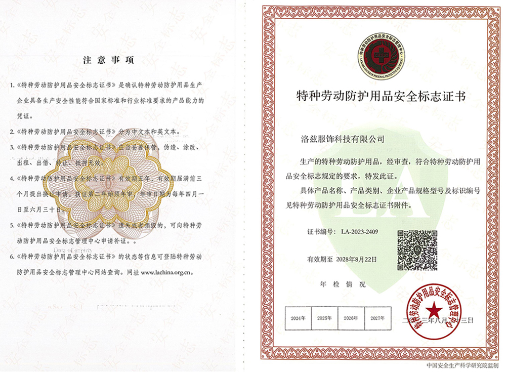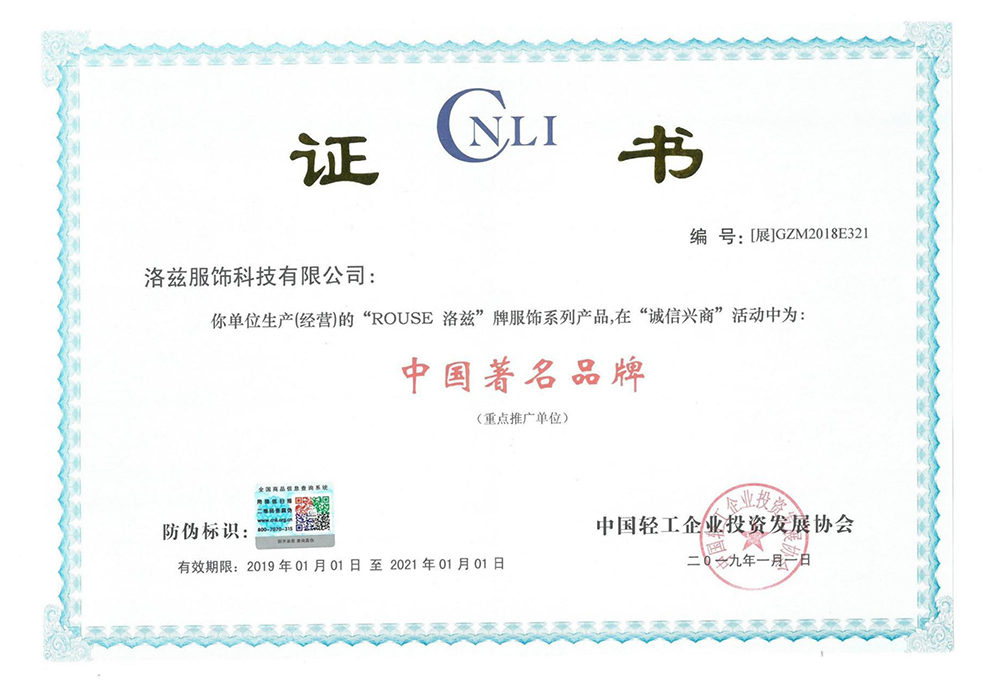 - 服装行业质量领先品牌认定证书
