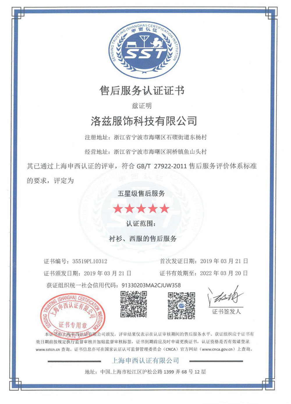 - 售后服务认证证书