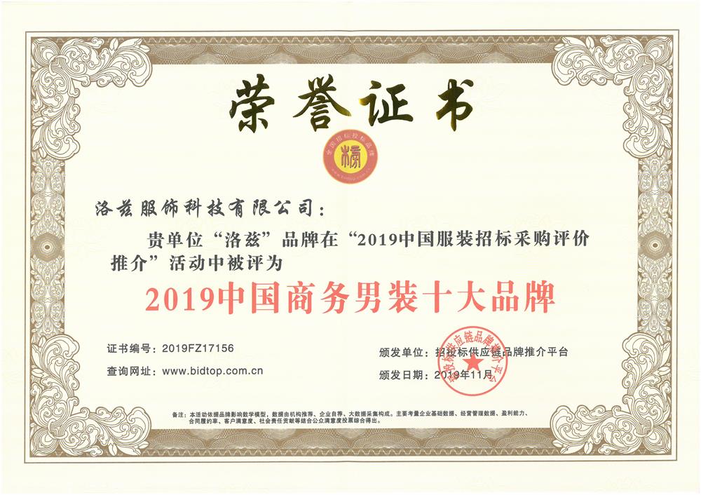 - 2019中国商务男装十大品牌